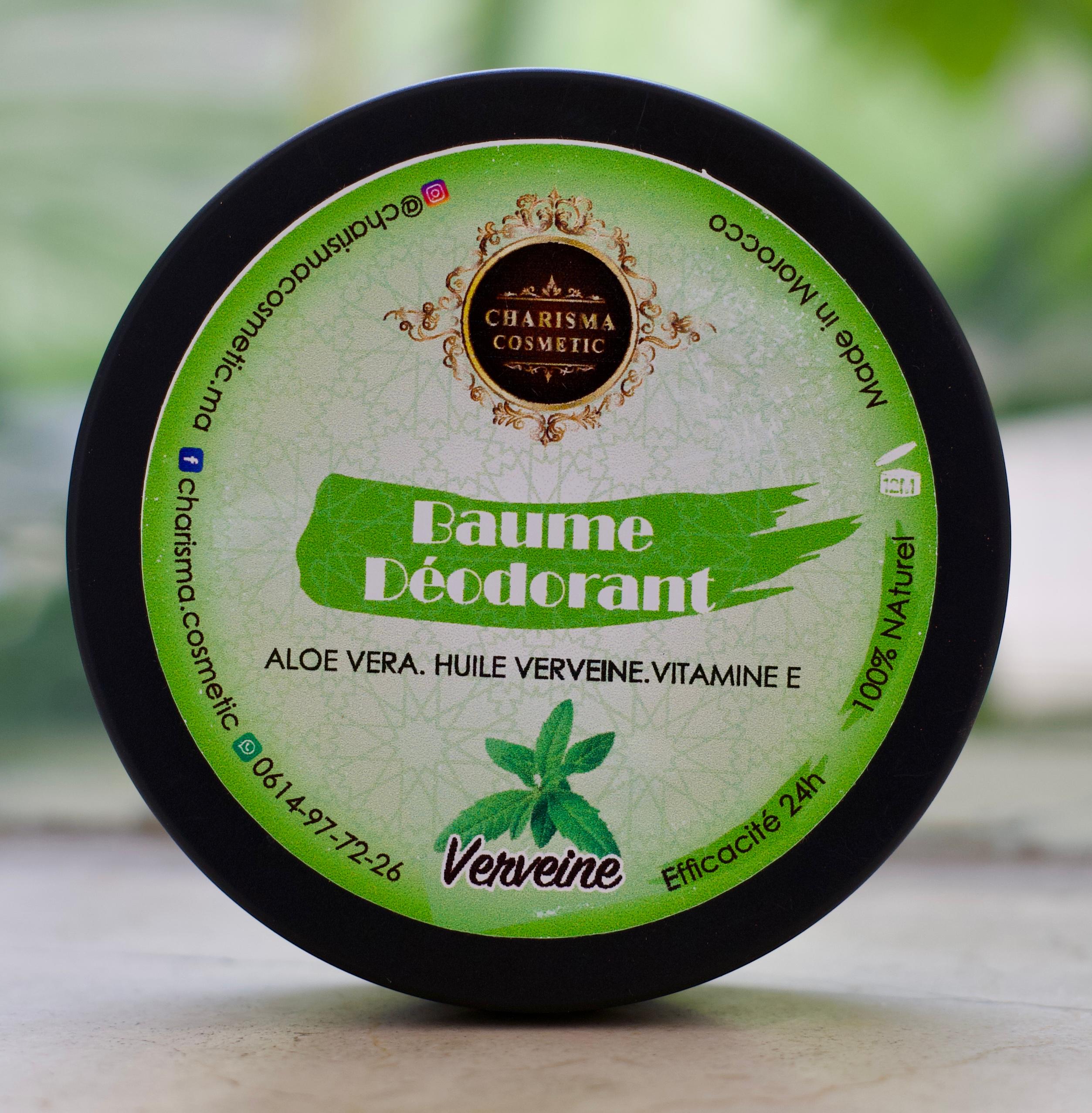 Herbal verbena deodorant balm with aloe vera and vitamin E, gentle and effective for all-day odor control.