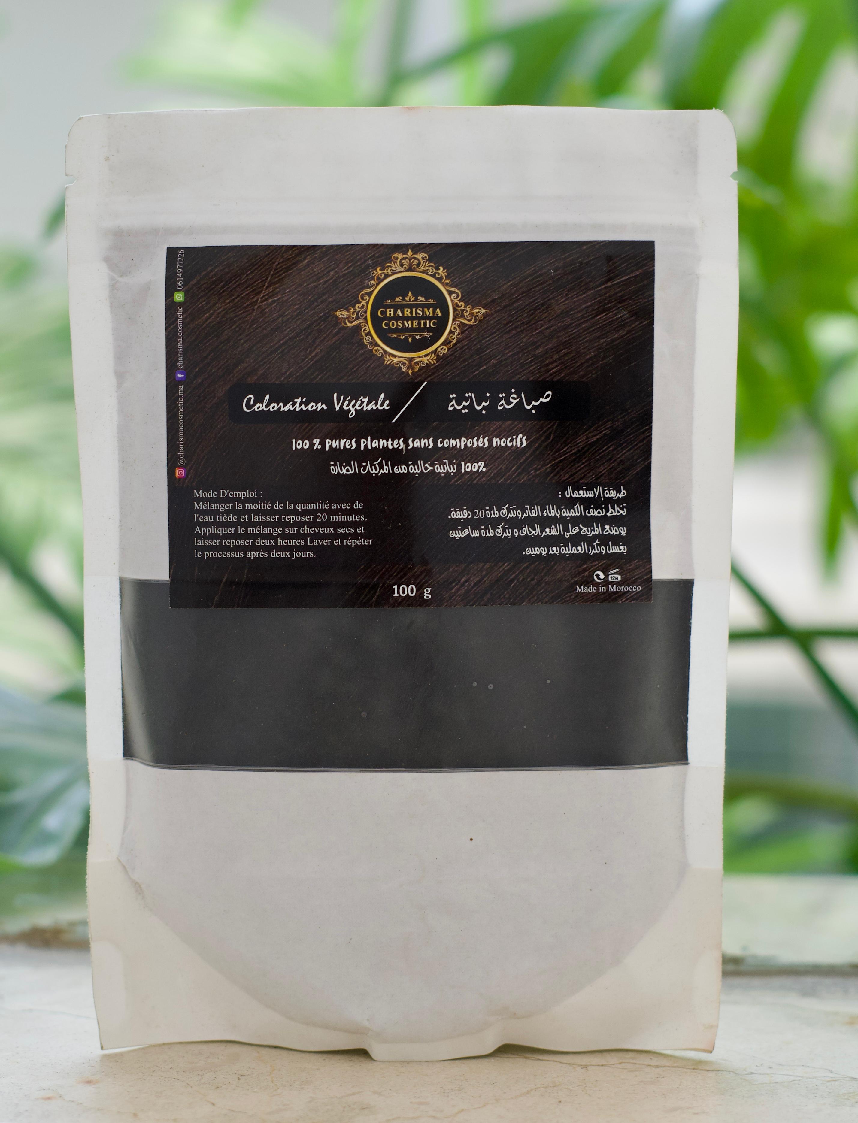 100% plant-based hair color powder for rich coverage without harmful additives; mix and apply to clean hair.
