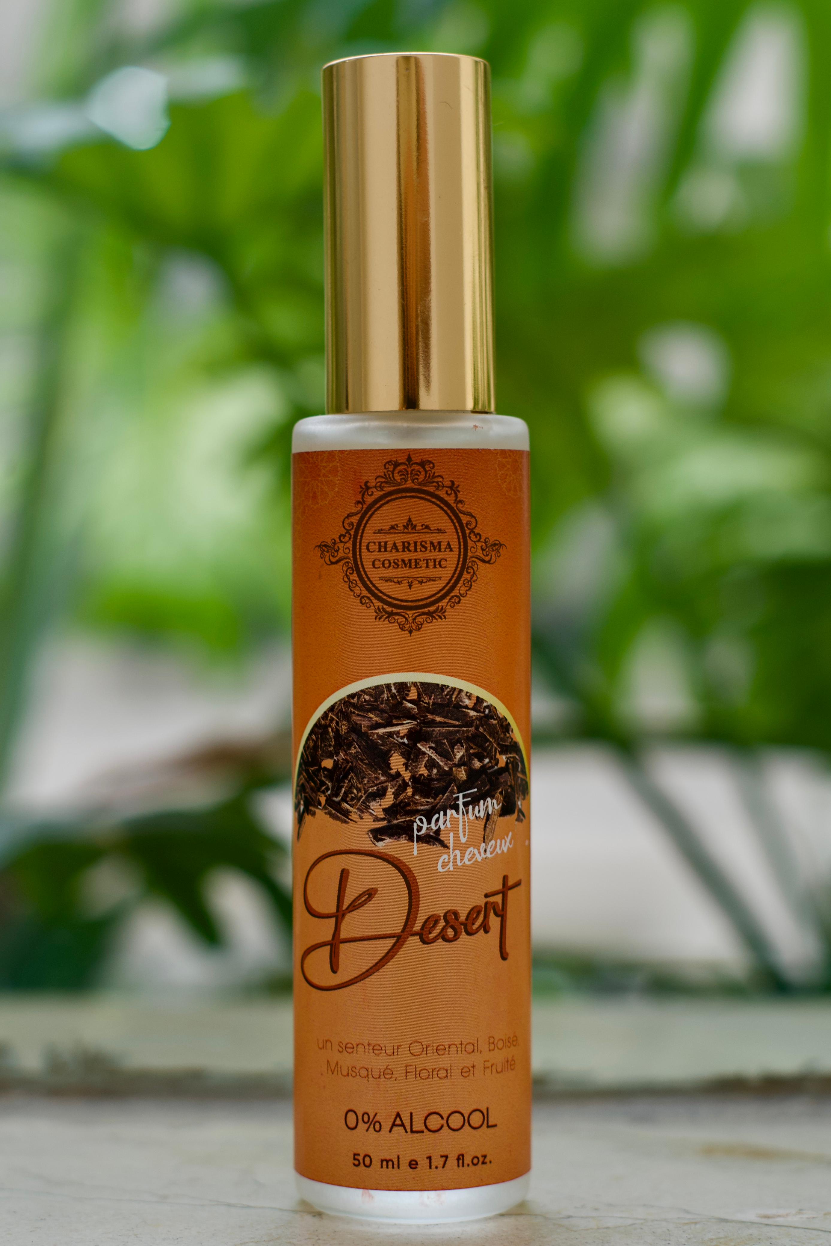 Oriental hair perfume with warm woody, musky, and fruity notes; 0% alcohol for gentle scenting.